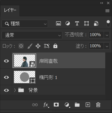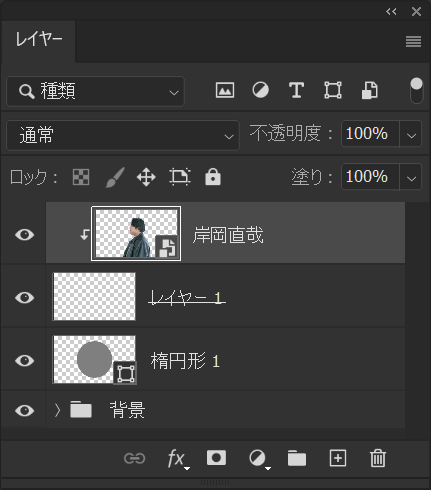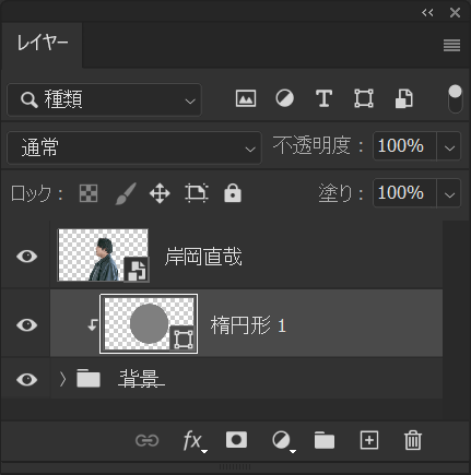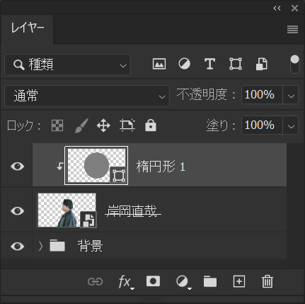 クリッピングマスクしているレイヤーはこんな感じ、丸い図形に対してクリッピングマスクをしている状態!
