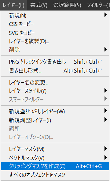 メニューバーの「レイヤー」から「クリッピングマスクを作成」を選択!