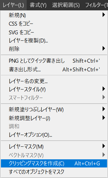 メニューバーの「レイヤー」から「クリッピングマスクを作成」を選択!
